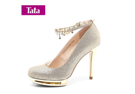 ④飾扣:正品他她女鞋如果有裝飾鏈的話是是偏金色的,如果有水鉆的話水鉆帶有光澤,顯得高貴,仿品他她女鞋的飾鏈是偏銅色,無光澤!